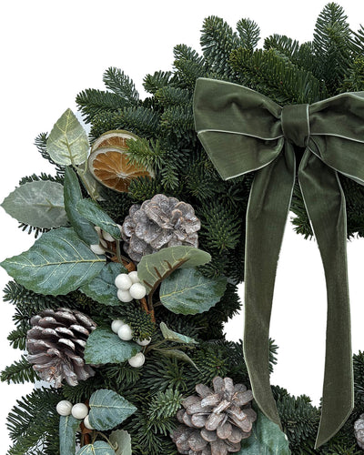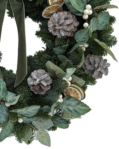 Evoking the magical feeling of a wintry walk through the forest, the Touch of Frost Christmas wreath is decorated with seasonal woodland adornments that glisten with a frosted effect for a subtle festive twinkle.